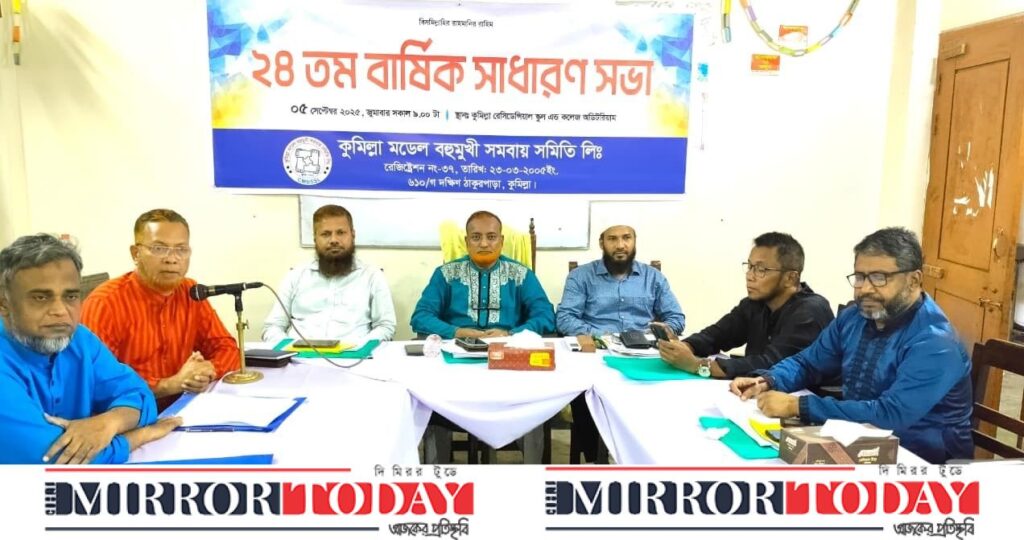 কুমিল্লা মডেল বহুমুখি সমবায় সমিতির ২৪তম বার্ষিক সাধারণ সভা অনুষ্ঠিত হয়েছে। শুক্রবার (৫ সেপ্টেম্বর) নগরীর ঠাকুরপাড়া কুমিল্লা রেসিডেন্সিয়াল স্কুল অ্যান্ড কলেজের হলরুমে এ সাধারণ সভা অনুষ্ঠিত হয়।